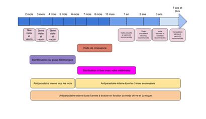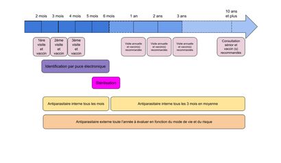 La première année de vie de votre animal est une année particulièrement remplie : deux ou trois visites vaccinales, identification, traitement très régulier avec des anti-parasitaires, surveillance de la croissance, suivi de son comportement au passage à l’adolescence, éventuellement stérilisation…